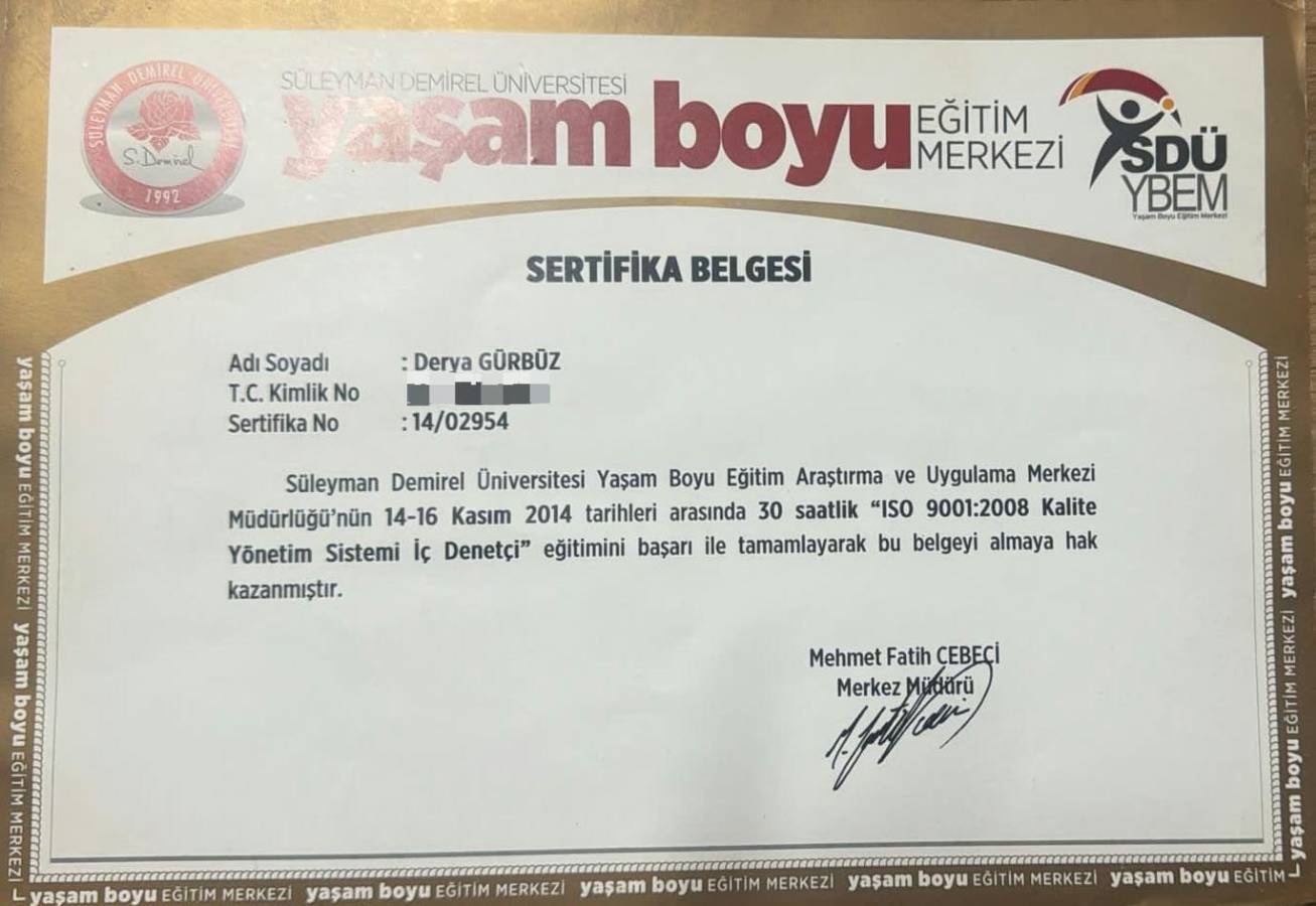 ISO 9001-2008 Kalite Belgesi
